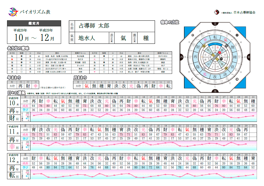 生年月日から、あなたの運氣の流れ(バイオリズム)を導き出し、今の動き方、今後の計画についてアドバイスいたします。